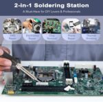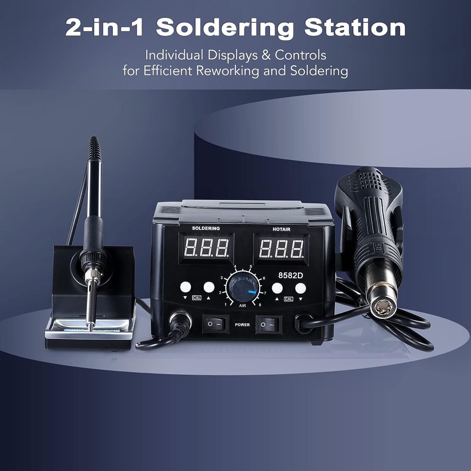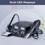 Dos en uno —– Atención: el voltaje de este producto es de 220V. La estación de retrabajo y la estación de soldadura se combinan en uno, y puede controlar por separado el retrabajo y la soldadura SMD. Esta máquina te ahorrará espacio, dinero y mantendrá tu escritorio de trabajo bien organizado.