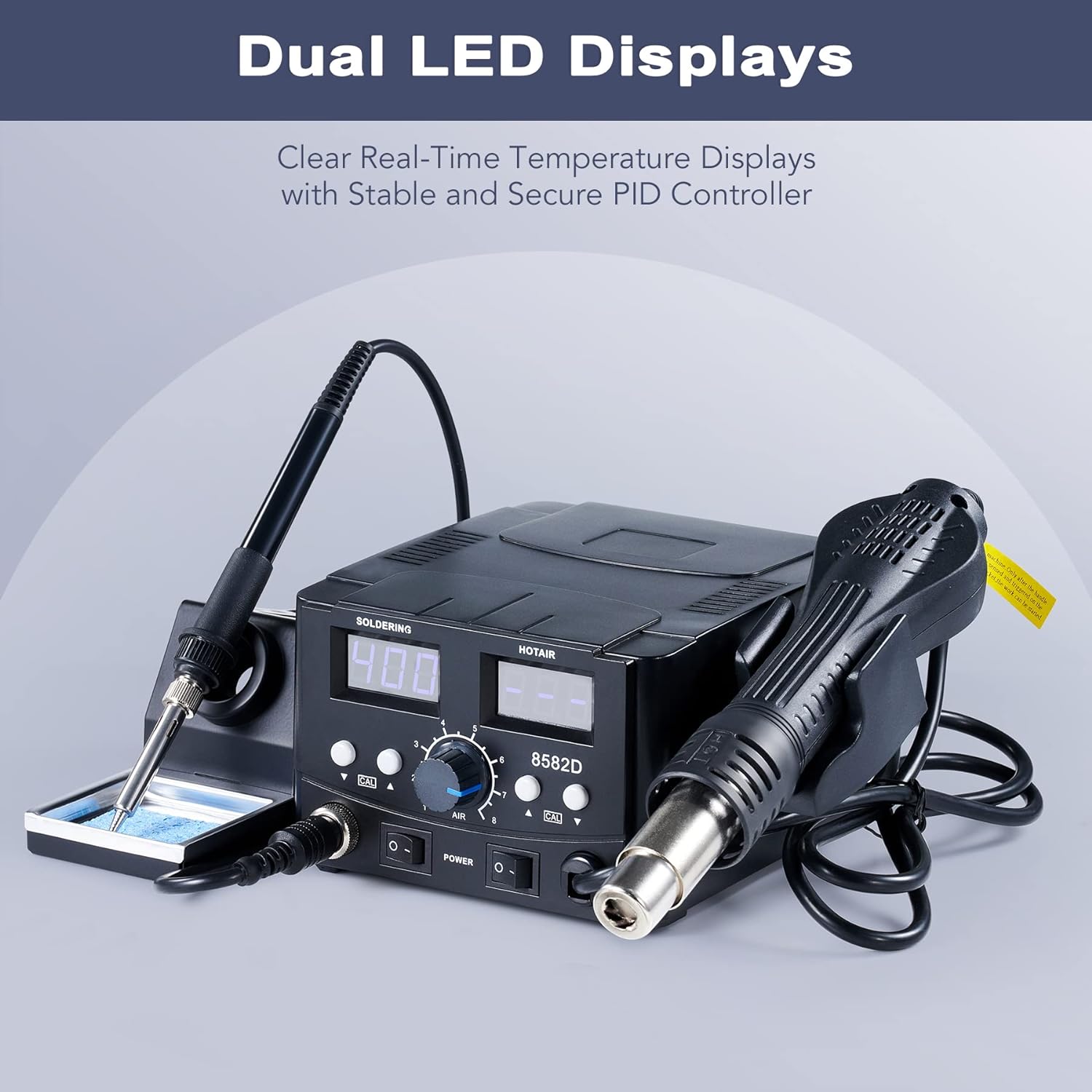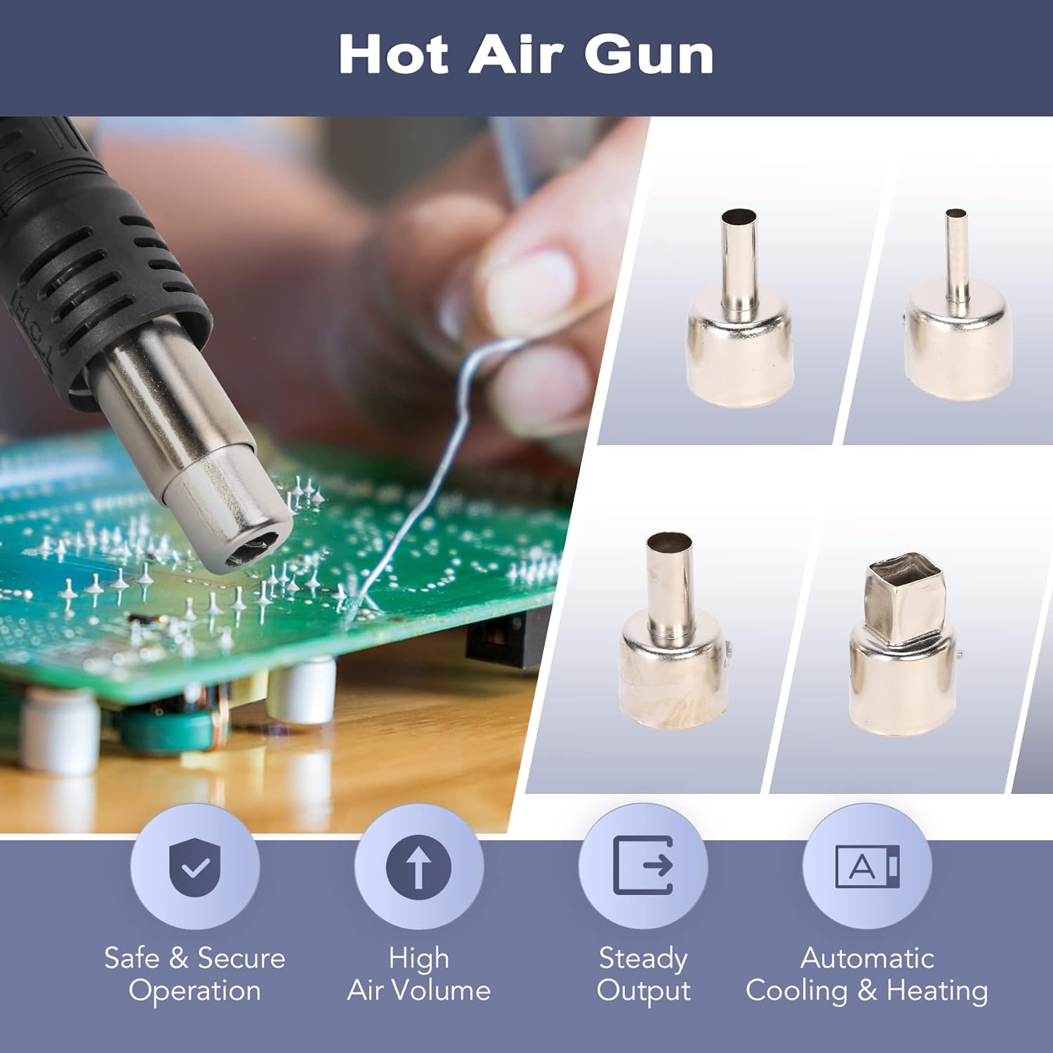 Amplia aplicación: este producto está diseñado para soldar o desoldar SOIC, CHIP, QFP, PLCC, BGA y otros componentes sensibles a la temperatura, una herramienta esencial para reparación de teléfonos celulares, reparación de computadoras portátiles o soldadura de placas de circuito. Verdaderamente un imprescindible para los amantes del bricolaje y los profesionales de fin de semana.
