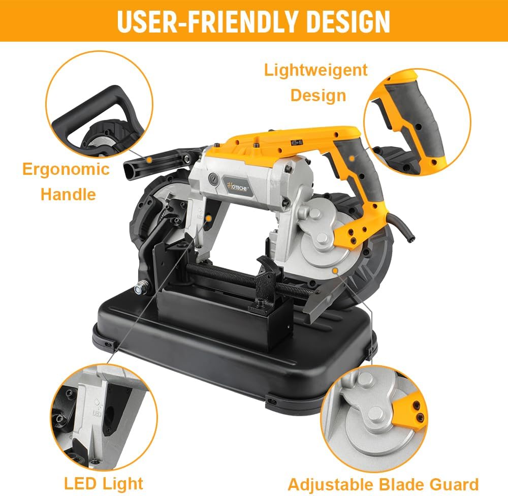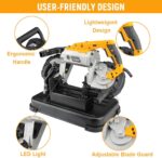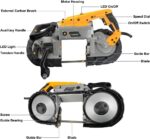 – Gran capacidad de corte: La capacidad de corte de la sierra de cinta: sin base: capacidad de corte profundo de 4.7 «x 4.7» para culata rectangular, capacidad de 5 «para culata redonda. Con base: 3.9″x3.2″ corte profundo para culata rectangular, 3.93» para culata redonda.