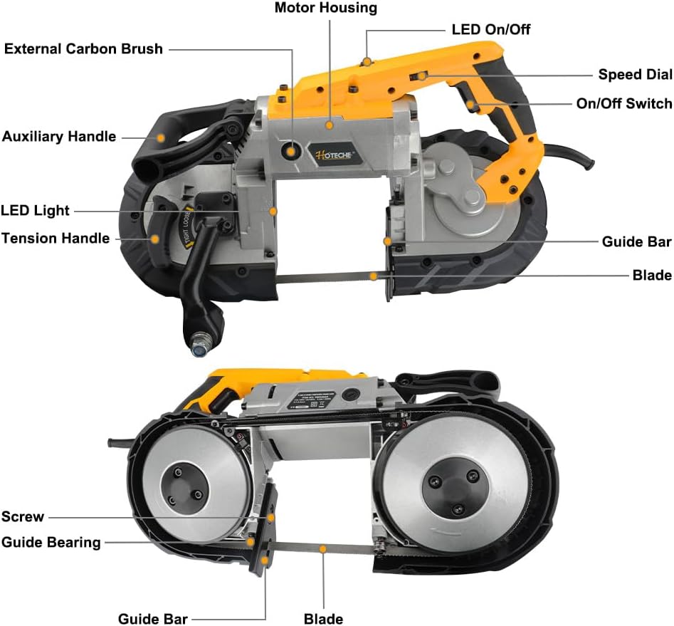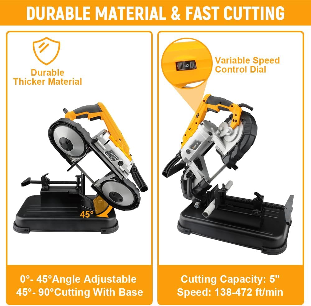 – Potente motor: 1100W 10 amperios potente motor de cobre puro, diseñado con potencia controlada para soportar cualquier aplicación en el lugar de trabajo. Velocidad de corte: 137.8-472.4ft/min, proporciona un corte rápido y suave sin chispas y rebabas.