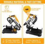 – Uso amplio: Esta sierra de cinta de corte de metal se adapta para cortar metal, acero, aluminio y cable compuesto. Además, se puede utilizar para hierro angular, tubería de PVC y cualquier material similar.