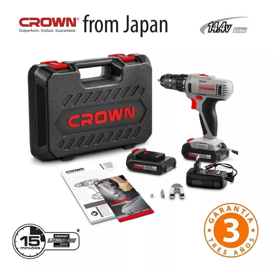 Taladro Atornillador 14.4V Japan industrial Lith Ion Crown + kit completo de 58 Pcs