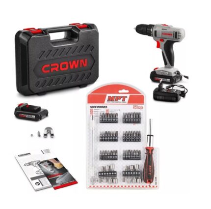 Taladro atornillador 14.4v con 2 baterias + 58 Pcs Crown CT21055-1.5BMC